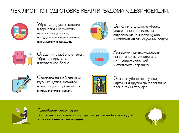 От грамотной подготовки жилого помещения к процедуре дезинсекции зависит ее эффективность и получение максимального результата.